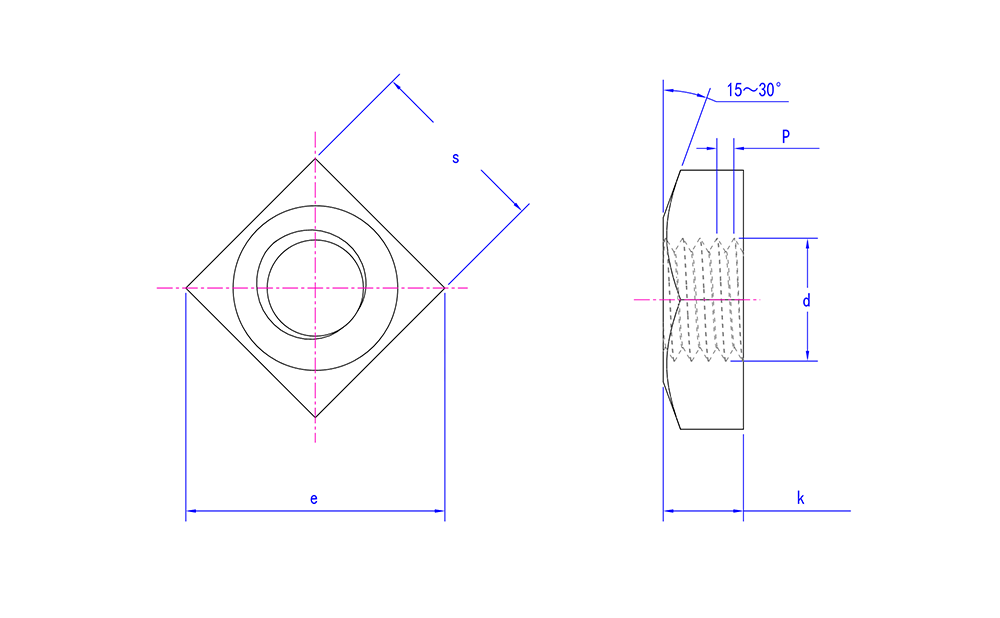 | Caractéristiques internes | Filetage interne standard, forme carrée pour augmenter la surface de contact |