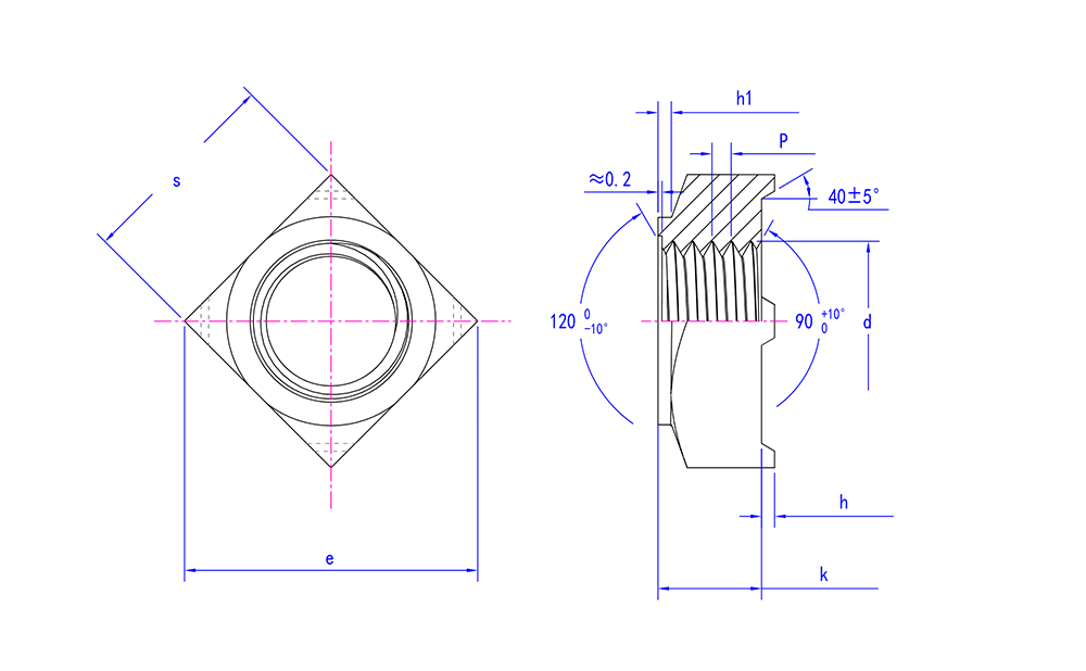 | Caractéristiques internes | Filetage intérieur standard, carré à l'extérieur, pouvant être soudé à la structure |